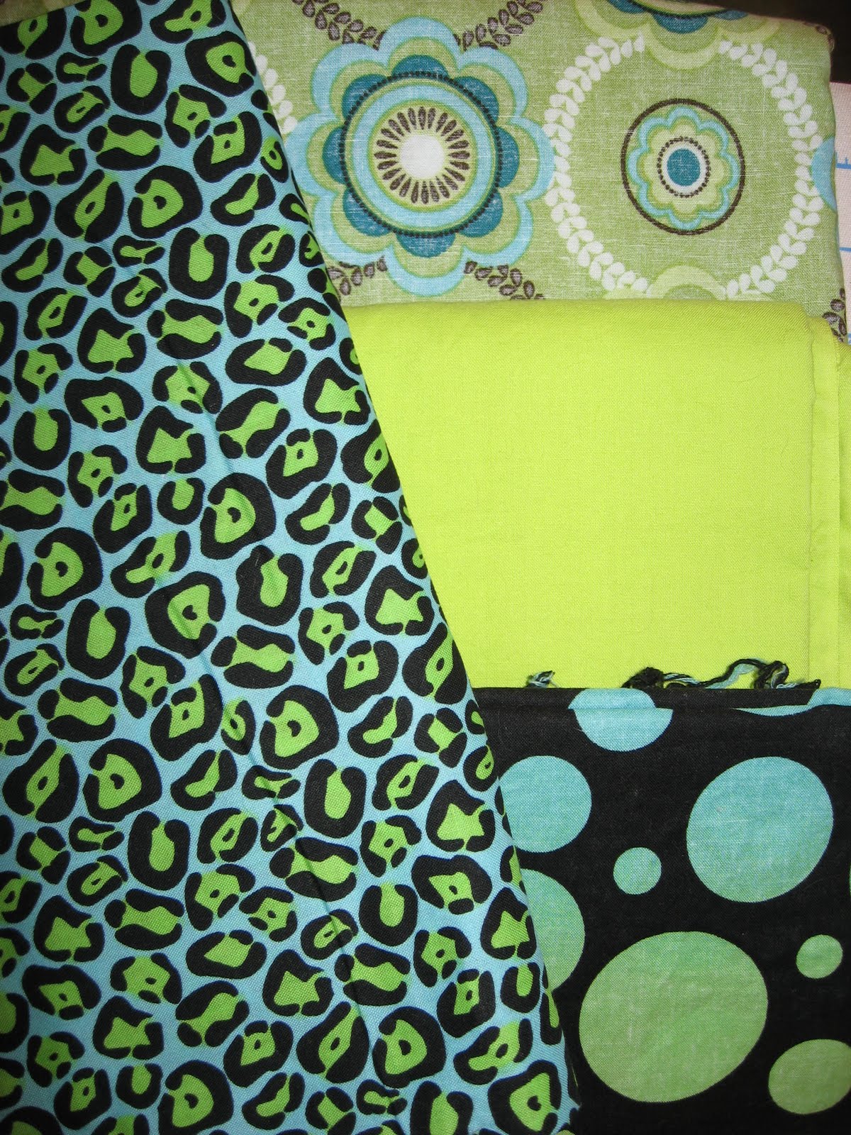 One of the things I've been doing lately, washing new fabric I've acquired that i want to make a quilt from. One of the fabrics, the animal printish one, I'm not sure about yet, i'm kinda iffy on it. Here is the fabric, lots of green.